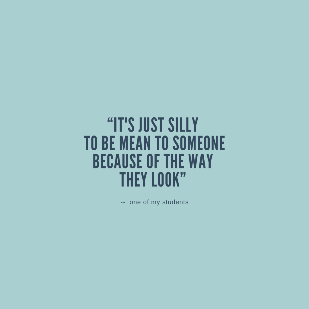 CJ: (pause) … it’s just silly to be mean to someone because of the way they look.