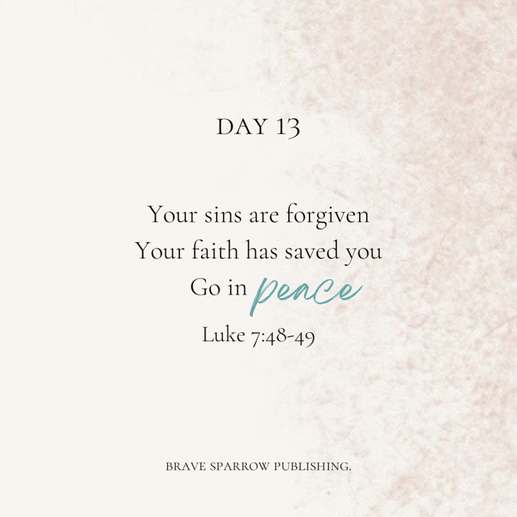 In response, Jesus defends and ministers to her. Your sins, though many, are forgiven… Your faith has saved you; go in peace. I can only imagine the freedom, the peace she must have experienced at that moment. The turmoil of sin, the conflict of judgment that had rested on her for so long, lifted in a moment.