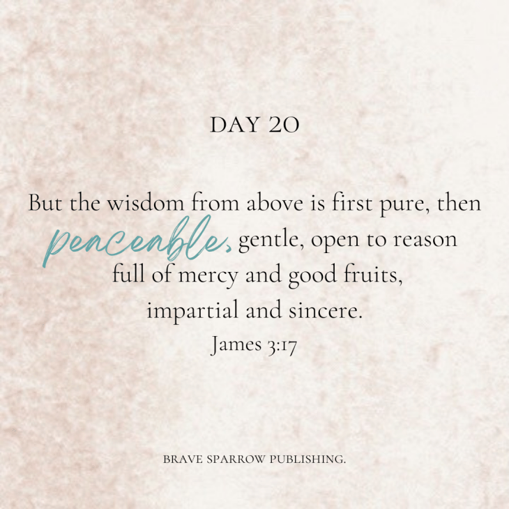 Let’s take a look at what James says about wisdom and peace. I think it’s a good follow-up to being peacemakers. James 3:13-19