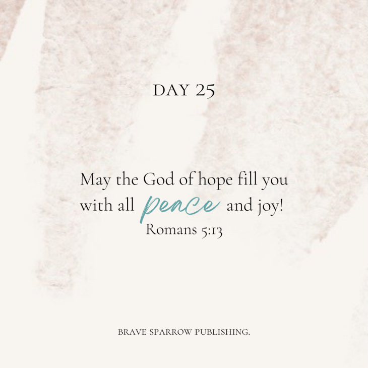 May the God of all hope fill you with joy and peace in believing. Romans 5:13